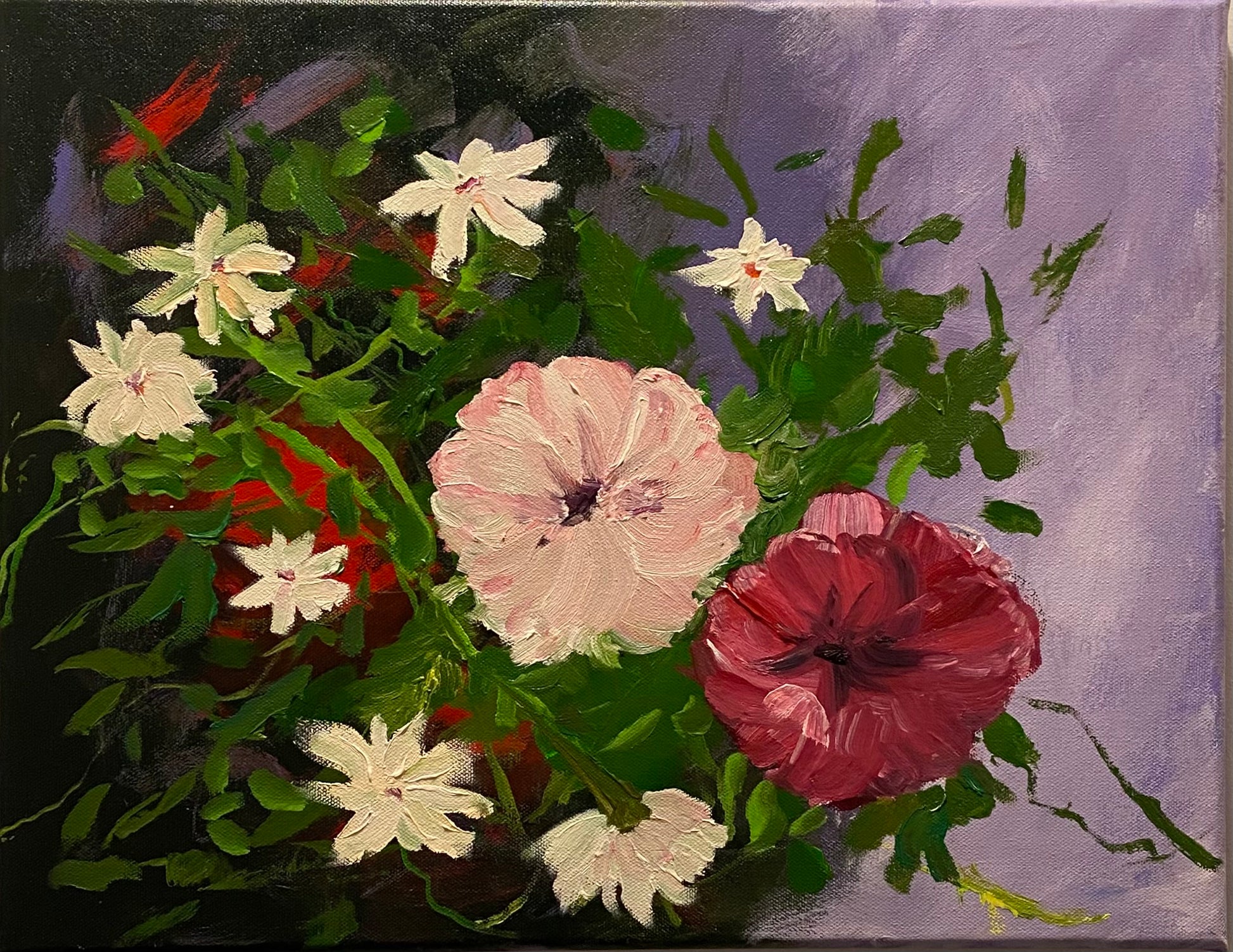 18X14 Oil Painting "Whispers of Spring" invites you to embrace the playful dance of red, pink, and white blossoms. This charming bouquet captures the lighthearted spirit of spring, filling any space with cheerful color and fresh vibes. It’s the perfect way to add a joyful pop of nature’s sweetest whispers to your day!